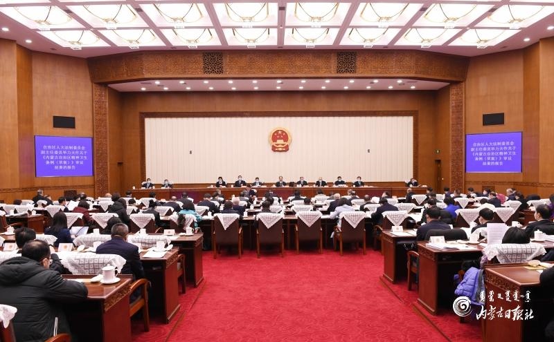 會議聽取了呼和浩特市人大常委會主任云建東作的關于《呼和浩特市文明行為促進條例》的說明;聽取了呼倫貝爾市人大常委會主任陳立新作的關于《呼倫貝爾市文明行為促進條例》的說明;聽取了通遼市人大常委會副主任李志剛作的關于《通遼市蒙醫(yī)正骨保護條例》的說明;聽取了赤峰市人大常委會主任鄒德華作的關于《赤峰市農村牧區(qū)人居環(huán)境治理條例》的說明;聽取了鄂爾多斯市人大常委會主任祁畢西勒圖作的關于《鄂爾多斯市中小學校幼兒園規(guī)劃建設條例》的說明;聽取了巴彥淖爾市人大常委會主任閆鵬作的關于《巴彥淖爾市城市客運交通管理條例》的說明。