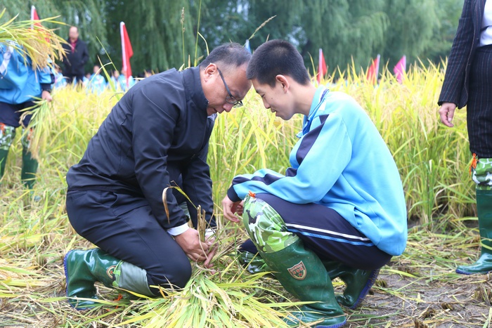 在科右前旗大壩溝中學水稻“收割節(jié)”的活動現(xiàn)場,調(diào)研組一行拿起鐮刀,穿起水鞋,來到水稻田里,與學生們一起體驗收割水稻帶來的成就感和幸福感。調(diào)研人員表示:對于不愁吃、不愁穿的年輕一代而言,僅僅從勞動謀生功能的角度去思考勞動教育是遠遠不夠的,他們最匱乏的是精神層面自我實現(xiàn)的意義感和價值感。通過深入實際,參與勞動,創(chuàng)造價值,這樣全流程的勞動實踐,才能深切領會“幸福是奮斗出來的”內(nèi)涵與意義,才能養(yǎng)成正確的勞動價值觀和良好勞動品質。