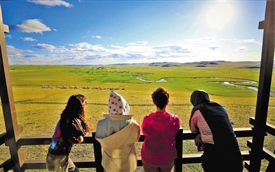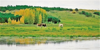 “秋天的草原更令人迷醉。絲絲涼風,清爽宜人,湛藍天空,明靜高遠,柔美蜿蜒的莫日格勒河,悠然自得的牧馬生活,最讓我難忘的是呼倫貝爾的綠?!贝筮B的王女士帶著父母和孩子自駕游呼倫貝爾,從森林到草原,一路尋綠穿行。