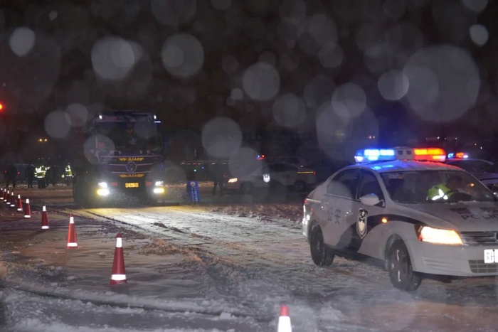 早上4時(shí)30分,經(jīng)公安民警、防疫工作人員認(rèn)真核對(duì)司乘人員48小時(shí)內(nèi)核酸檢測(cè)陰性證明、車輛信息及編號(hào)等準(zhǔn)備工作后,229輛大貨車按照20輛一組要求,在警車的護(hù)送下順利駛出二連浩特市。