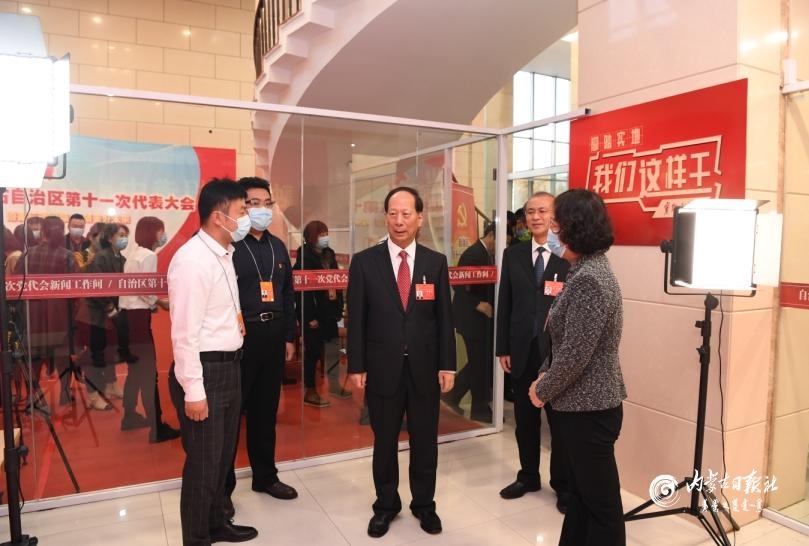 石泰峰親切看望慰問自治區(qū)第十一次黨代會(huì)新聞工作者