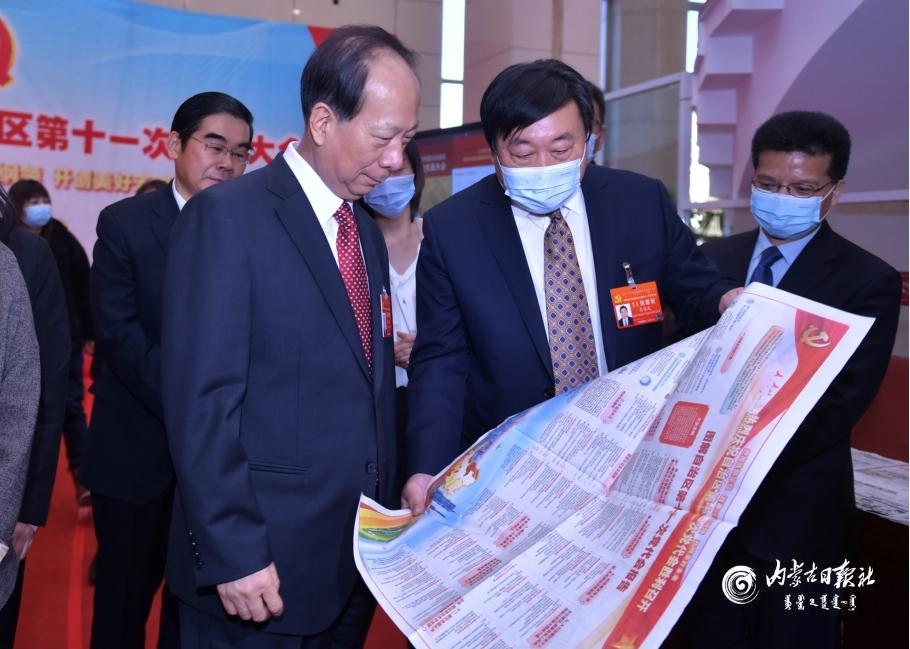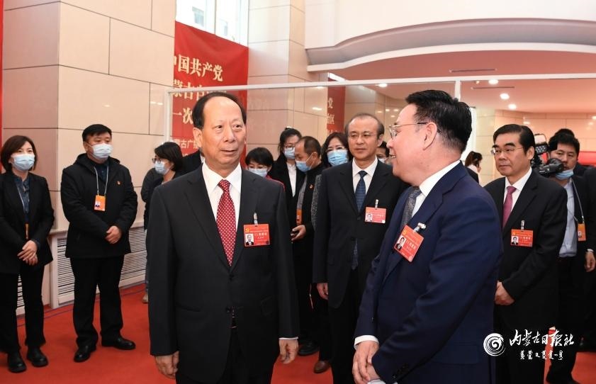 11月30日上午,石泰峰在中國(guó)共產(chǎn)黨內(nèi)蒙古自治區(qū)第十一次代表大會(huì)閉幕后看望實(shí)踐雜志社上會(huì)媒體記者。內(nèi)蒙古日?qǐng)?bào)社融媒體記者 袁永紅攝