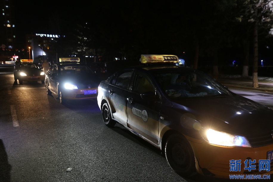 2月20日晚9點,前往指定地點運送樣本的出租車排起了長隊,完成這一次運送,司機們當天的任務就完成了。新華網(wǎng)發(fā) 李倩攝