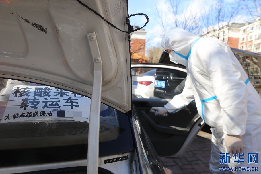到達核酸采樣點后,籍東斌在工作人員取樣本間隙對車輛進行消殺。核酸樣本轉(zhuǎn)運存在著一定風險性,籍東斌說,只要按要求做好防護,按規(guī)定完成工作,就沒什么問題。新華網(wǎng)發(fā) 李倩攝