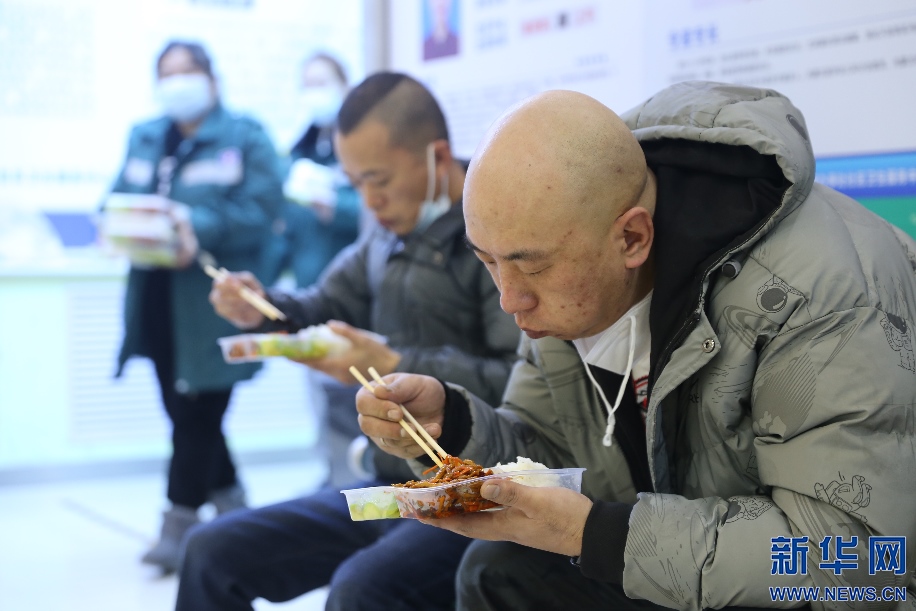 用餐時間也是轉(zhuǎn)運司機們短暫的休整時間。吃過午飯,籍東斌又要馬上投入到下一輪緊張的工作中。新華網(wǎng)發(fā) 李倩攝