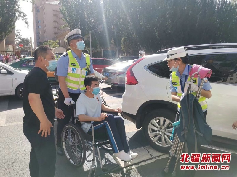 現(xiàn)場最讓感動的是,一位腳扭傷的考生,在兩名交警的幫助下坐上輪椅進(jìn)入考場?!坝辛怂麄兊膸椭?,減少了我們的焦慮,心情輕松了很多,而且今天早早就來到了考場?!笨忌议L介紹,昨天看考場時,交警同志得知孩子的腳扭傷后,今天特意趕來護(hù)送學(xué)生進(jìn)入考場。