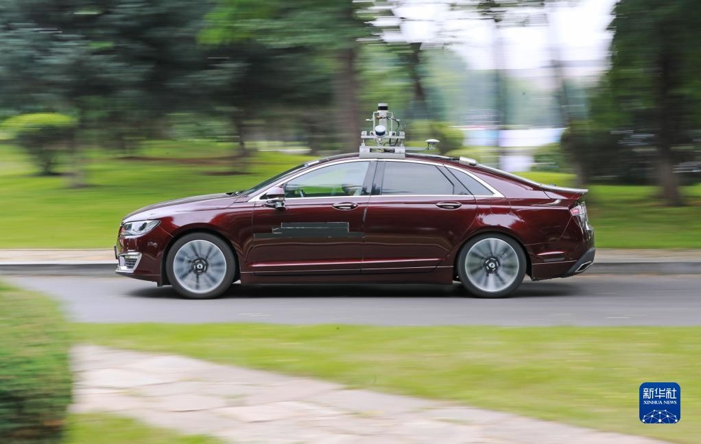 2021年7月9日,在沈陽市渾南區(qū)東軟軟件園,自動(dòng)駕駛汽車在封閉道路上進(jìn)行行駛測(cè)試。新華社記者 楊青 攝