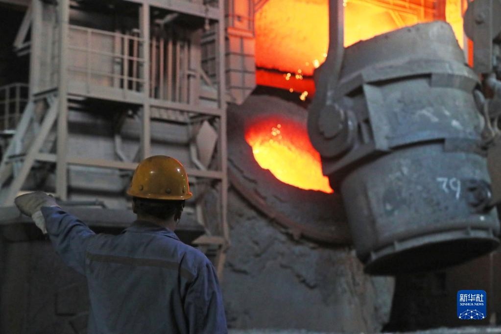 2021年8月18日,在本鋼板材煉鋼廠,煉鋼作業(yè)區(qū)工人在進(jìn)行轉(zhuǎn)爐冶煉作業(yè)。新華社記者 楊青 攝