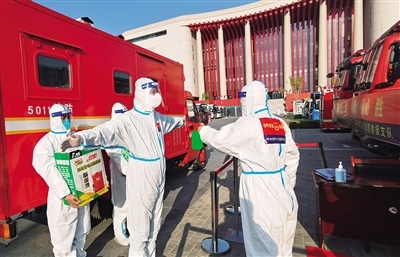 10月20日,在內(nèi)蒙古革命歷史博物館方艙醫(yī)院,呼和浩特市消防救援支隊(duì)消防員正在做個(gè)人消殺。本輪疫情發(fā)生以來(lái),該支隊(duì)累計(jì)執(zhí)行消毒消殺任務(wù)300余次,完成室內(nèi)消殺近15萬(wàn)平方米、消防安全線(xiàn)上檢查指導(dǎo)近500(家)次,為疫情防控貢獻(xiàn)消防力量。(內(nèi)蒙古日?qǐng)?bào)社融媒體記者記者 懷特烏勒斯 通訊員 隆雪 攝)