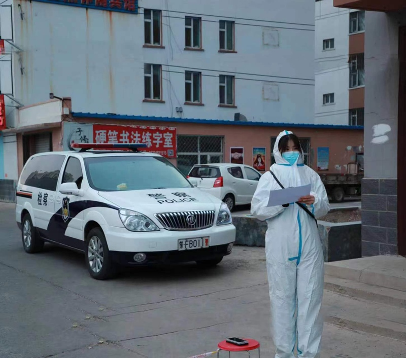 圖③內(nèi)蒙古自治區(qū)檢察院興安盟分院干警在寒風中參與社區(qū)疫情防控。許百賀攝