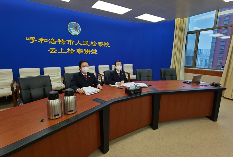 圖④11月18日,呼和浩特市檢察院干警線上參加全區(qū)民事檢察工作調(diào)度會。