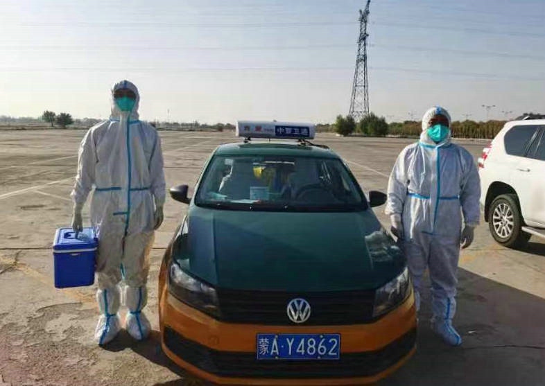 和轉(zhuǎn)運(yùn)員一起轉(zhuǎn)運(yùn)樣本(圖片由受訪(fǎng)者提供)