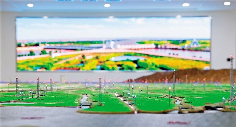 河套灌區(qū)是我國3個(gè)特大型灌區(qū)之一,也是我國重要的糧油生產(chǎn)基地,現(xiàn)已形成完整的7級(jí)灌排體系,引黃灌溉面積達(dá)1000多萬畝。160平方米的實(shí)體實(shí)時(shí)數(shù)字沙盤是微縮版的“河套灌區(qū)”,可以清晰地看到整個(gè)灌區(qū)的灌排體系。
