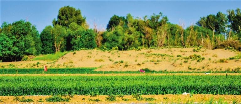 曾經(jīng)的沙地經(jīng)過治理,已經(jīng)成為耕地和林地。