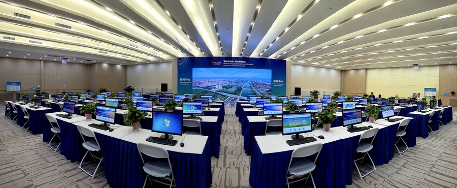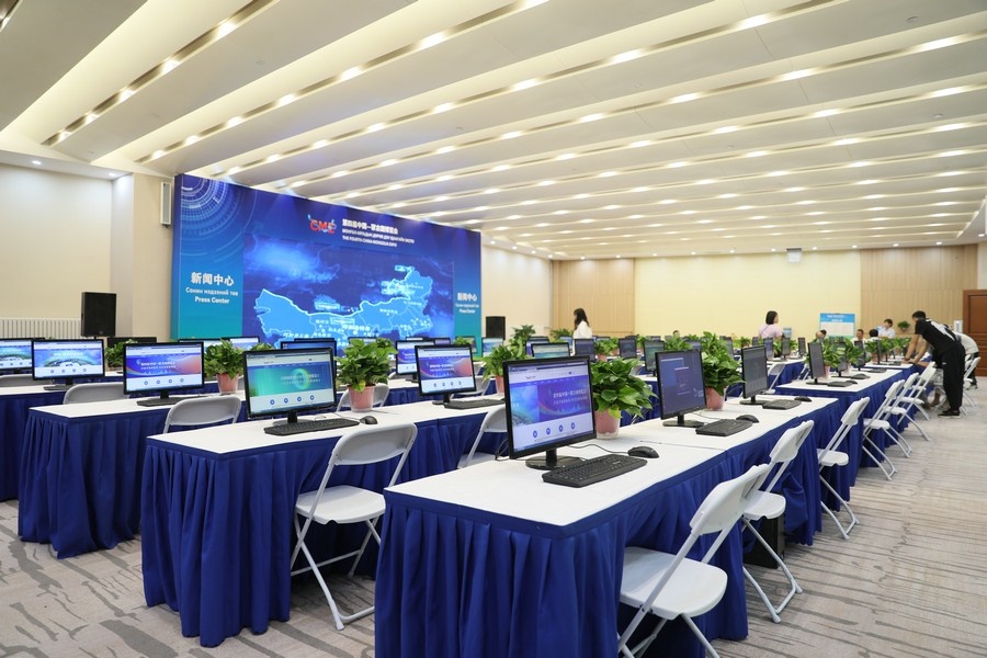4日下午,記者在敕勒川國際會展中心2層環(huán)廊看到,新聞中心內整齊地擺放著電腦、桌椅,兩邊茶歇區(qū),已備好零食和飲用水,供中外記者自行取用。