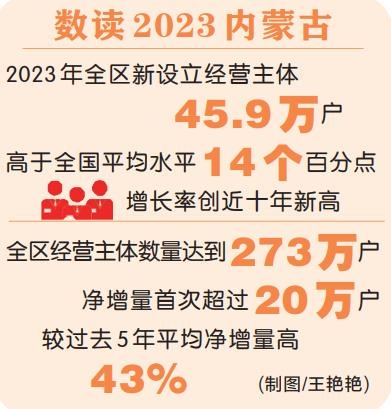 經(jīng)營主體迸發(fā)出新活力。2023年,自治區(qū)市場監(jiān)管局出臺便捷市場準入助力招商引資九條措施,取消、下放行政審批事項26項,減少環(huán)節(jié)113個。個體工商戶設立登記等31項、589項具體項目實現(xiàn)全區(qū)通辦,申請人可以在“家門口”辦“外地事”,全區(qū)經(jīng)營主體呈現(xiàn)數(shù)量增長、結(jié)構(gòu)優(yōu)化、活躍度提升的良好態(tài)勢。2023年全區(qū)新設立經(jīng)營主體45.9萬戶,高于全國平均水平14個百分點,增長率創(chuàng)近十年新高;全區(qū)經(jīng)營主體數(shù)量達到273萬戶,凈增量首次超過20萬戶,較過去五年平均凈增量高43%。在培育壯大經(jīng)營主體上,集成金融、用工、創(chuàng)新等各領域15條硬措施落地,小微企業(yè)和個體工商戶總量分別增長7.59%和7.3%。在激發(fā)經(jīng)營主體創(chuàng)新活力上,推動“一站式”服務進園區(qū)、進企業(yè),服務企業(yè)44761家,減免費用、節(jié)約成本7154萬元?!懊伞弊謽苏J證帶動377種產(chǎn)品實現(xiàn)增值,知識產(chǎn)權(quán)質(zhì)押融資達到48.21億元。