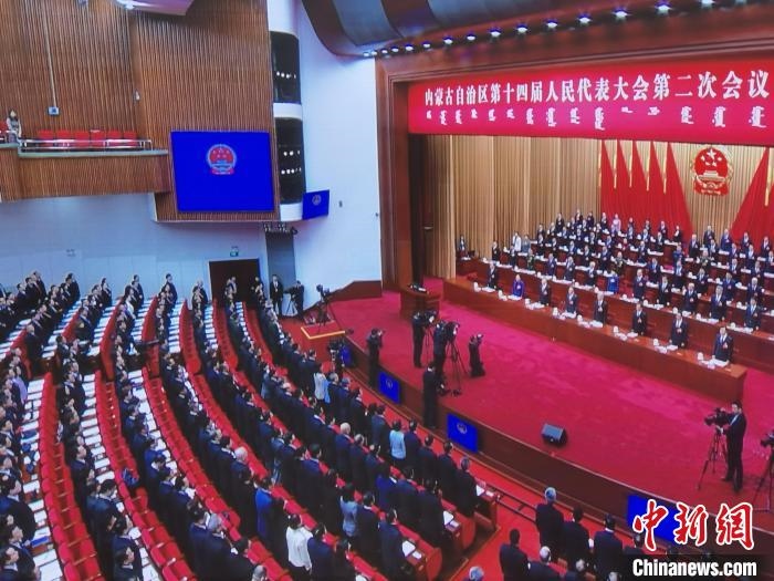 圖為內(nèi)蒙古自治區(qū)十四屆人大二次會議現(xiàn)場。 李愛平 攝