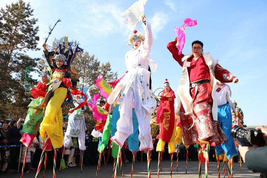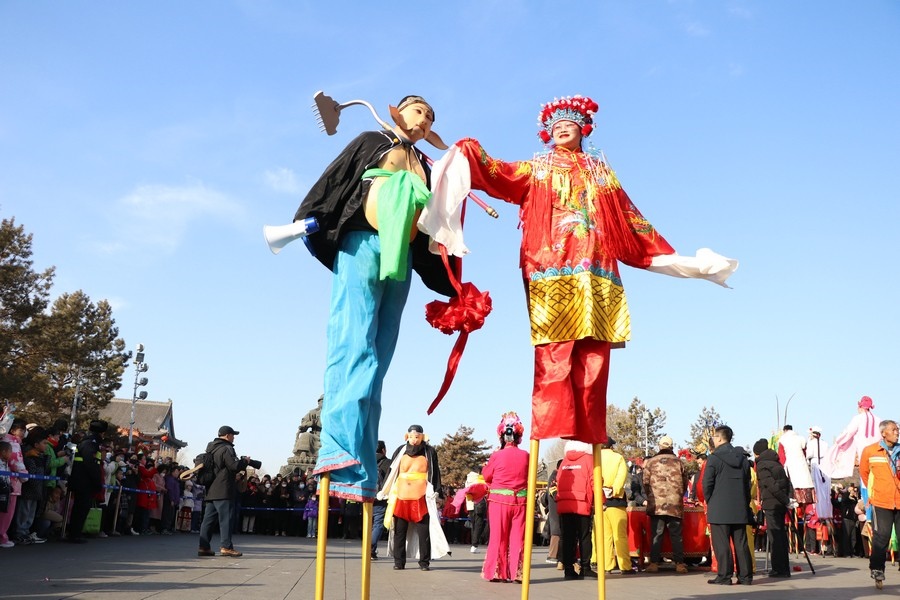 現(xiàn)場(chǎng)人潮涌動(dòng),歡聲笑語(yǔ)此起彼伏。扭秧歌隊(duì)伍身著色彩斑斕的服裝,手持彩扇,隨著歡快的音樂(lè)節(jié)奏,邁出輕盈的步伐,每一個(gè)動(dòng)作都充滿(mǎn)了力量感和韻律感。他們的表情歡快,笑容燦爛,將歡樂(lè)傳遞給每一位觀眾。與此同時(shí),踩高蹺也吸引了眾多觀眾的目光。演員們踩著高高的木蹺,身著華麗的戲服,扮演著各種角色,自如地行走、跳躍,引得觀眾陣陣喝彩。