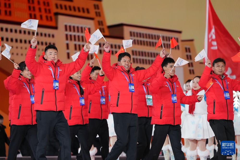 ??2月17日,西藏自治區(qū)體育代表團在開幕式上入場。新華社記者 陳欣波 攝