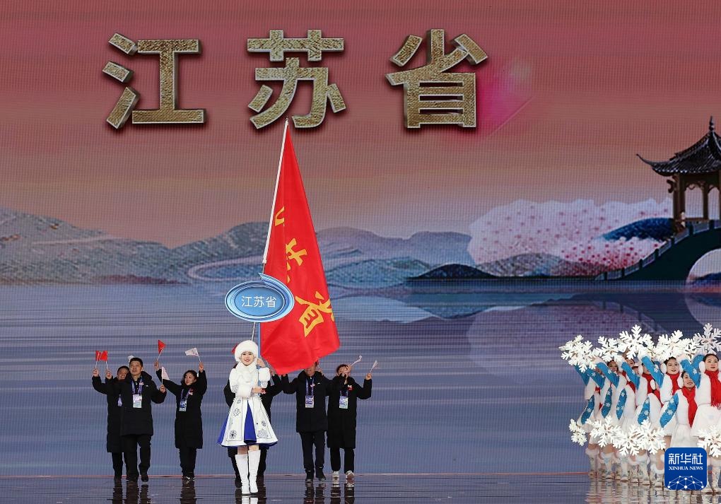 ??2月17日,江蘇省體育代表團在開幕式上入場。新華社記者 李博 攝