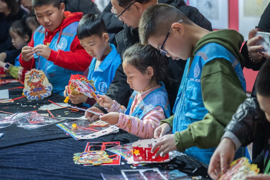 拆包裝、折疊、拼裝……小朋友們興致勃勃地做著自己的龍燈。