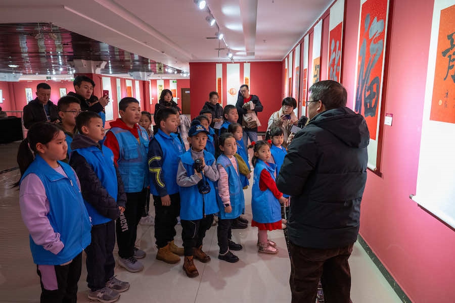 活動現(xiàn)場,20余名小朋友在家長的陪同下,參觀了“藝美北疆 遇見青城”——呼和浩特市百福迎春賀歲作品展”和“藝美北疆 新春納?!薄厣夏?nbsp;水墨集中國書畫名家邀請展,小朋友在呼和浩特美術館老師的講解下,了解了春節(jié)貼“?!弊质俏覈耖g由來已久的風俗,“?!蔽幕侵腥A優(yōu)秀傳統(tǒng)文化的組成部分,激發(fā)了小朋友們對傳統(tǒng)文化的熱愛。