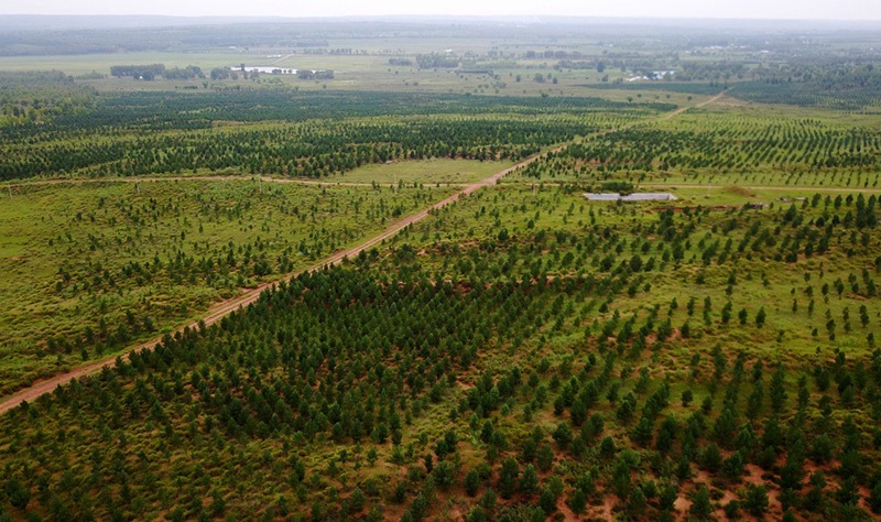 內蒙古鄂爾多斯市伊金霍洛旗初具規(guī)模的生態(tài)林場。