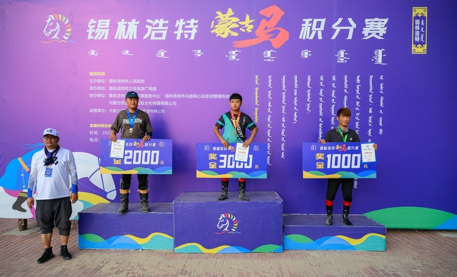 錫林浩特蒙古馬積分賽,自7月6日開賽以來,已連續(xù)舉行了兩場比賽(7月6日、7月13日),并將持續(xù)到9月1日。期間,每個周六15:00舉行速度賽1000米145CM(含)以下(2周歲馬)和15公里接力賽;每個周日15:00舉行拾哈達(dá)、跑馬射箭、145CM以下蒙古馬繞桶等項目。其中8月31日15:00舉行速度賽1000米145CM(含)以下(2周歲馬)和15公里接力賽總決賽,9月1日15:00舉行30公里耐力賽總決賽。