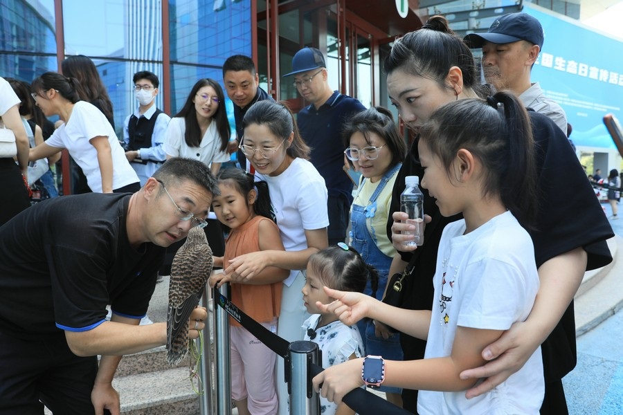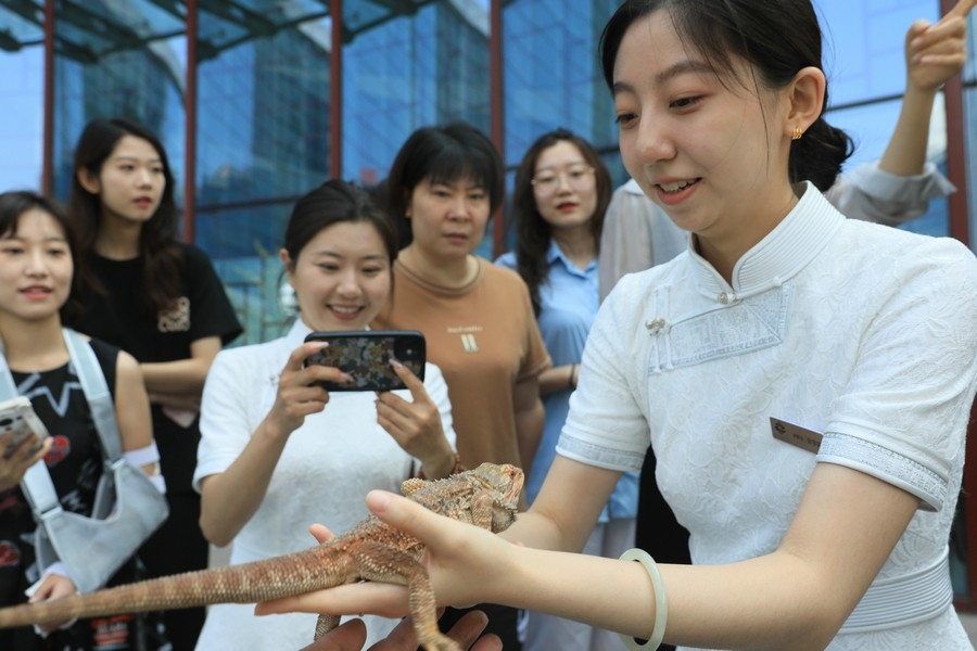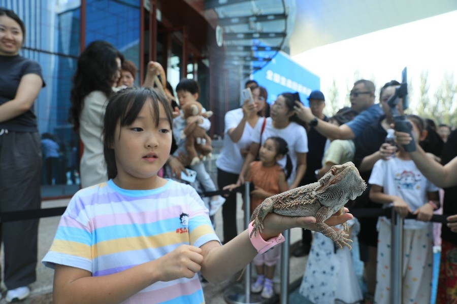 8月2日,呼和浩特。全國(guó)生態(tài)日宣傳活動(dòng)現(xiàn)場(chǎng),野生動(dòng)物零距離互動(dòng),吸引了眾多參觀(guān)者圍觀(guān)。