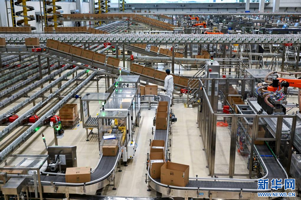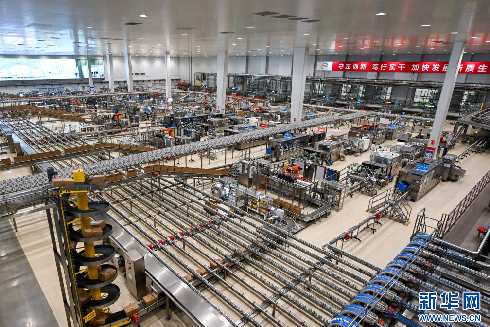 這是1月9日拍攝的呼和浩特市伊利現(xiàn)代智慧健康谷液態(tài)奶全球智造標桿基地生產(chǎn)車間。
