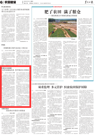 2025年4月3日,《農(nóng)民日?qǐng)?bào)》第6版刊發(fā)題為《內(nèi)蒙古扎魯特旗:加快鹽堿地改造 筑牢糧食安全根基》的文章,報(bào)道了近年來(lái),內(nèi)蒙古自治區(qū)通遼市扎魯特旗圍繞“向鹽堿地要糧,讓荒原變良田”的目標(biāo),加大鹽堿地治理力度,不斷挖掘鹽堿地開(kāi)發(fā)利用價(jià)值,把工程措施、生物措施和化學(xué)改良措施有機(jī)結(jié)合起來(lái),因地制宜、綜合治理,不斷拓展農(nóng)業(yè)耕地資源,激活鹽堿地“潛在糧倉(cāng)”資源,實(shí)現(xiàn)鹽堿地資源的系統(tǒng)改良和高效利用。