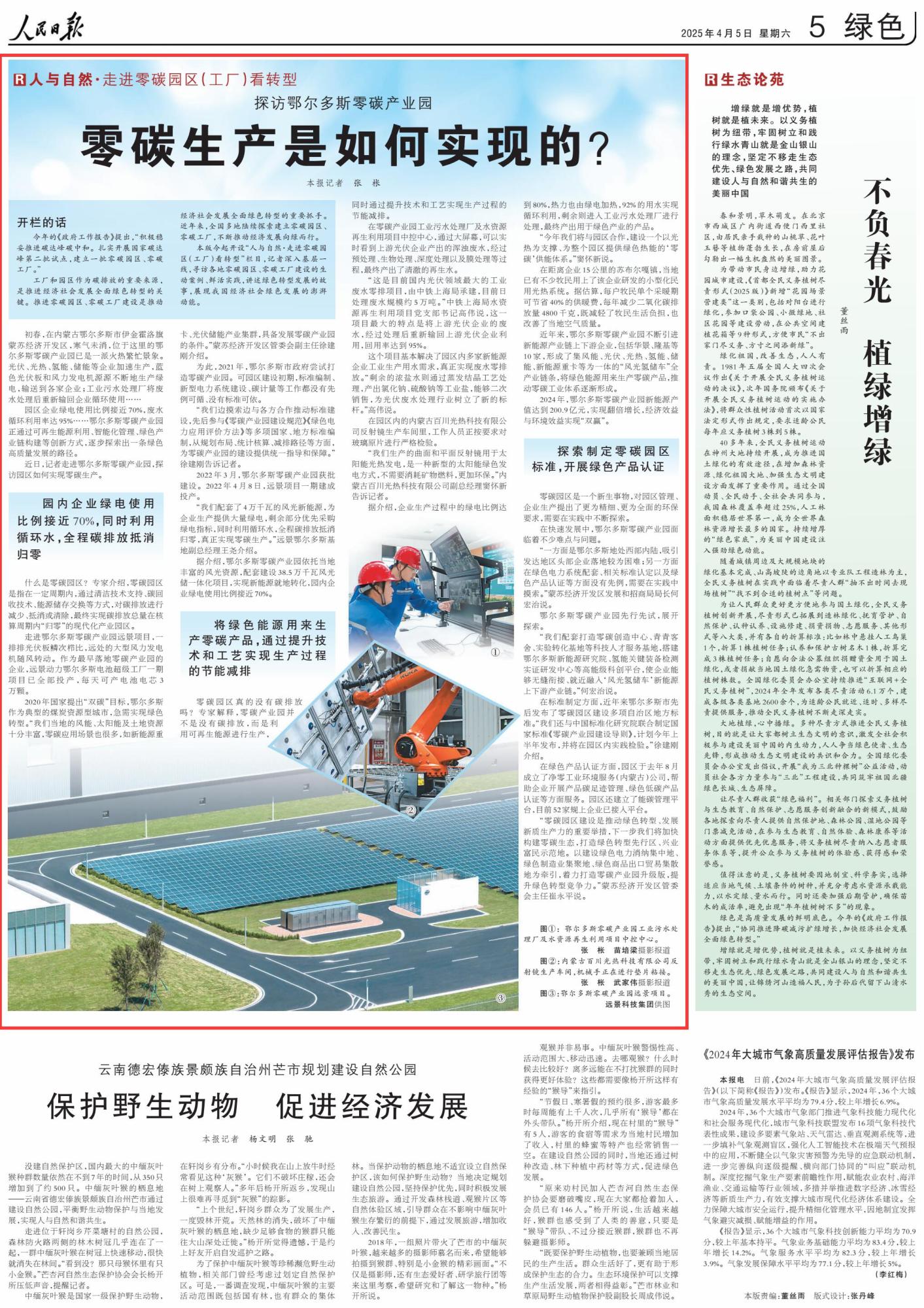2025年4月5日,《人民日?qǐng)?bào)》第5版刊發(fā)題為《探訪(fǎng)鄂爾多斯零碳產(chǎn)業(yè)園 零碳生產(chǎn)是如何實(shí)現(xiàn)的?》的文章,報(bào)道了鄂爾多斯零碳產(chǎn)業(yè)園通過(guò)可再生能源利用、智能化管理、綠色產(chǎn)業(yè)鏈構(gòu)建等創(chuàng)新方式,逐步探索出一條綠色高質(zhì)量發(fā)展的路徑。