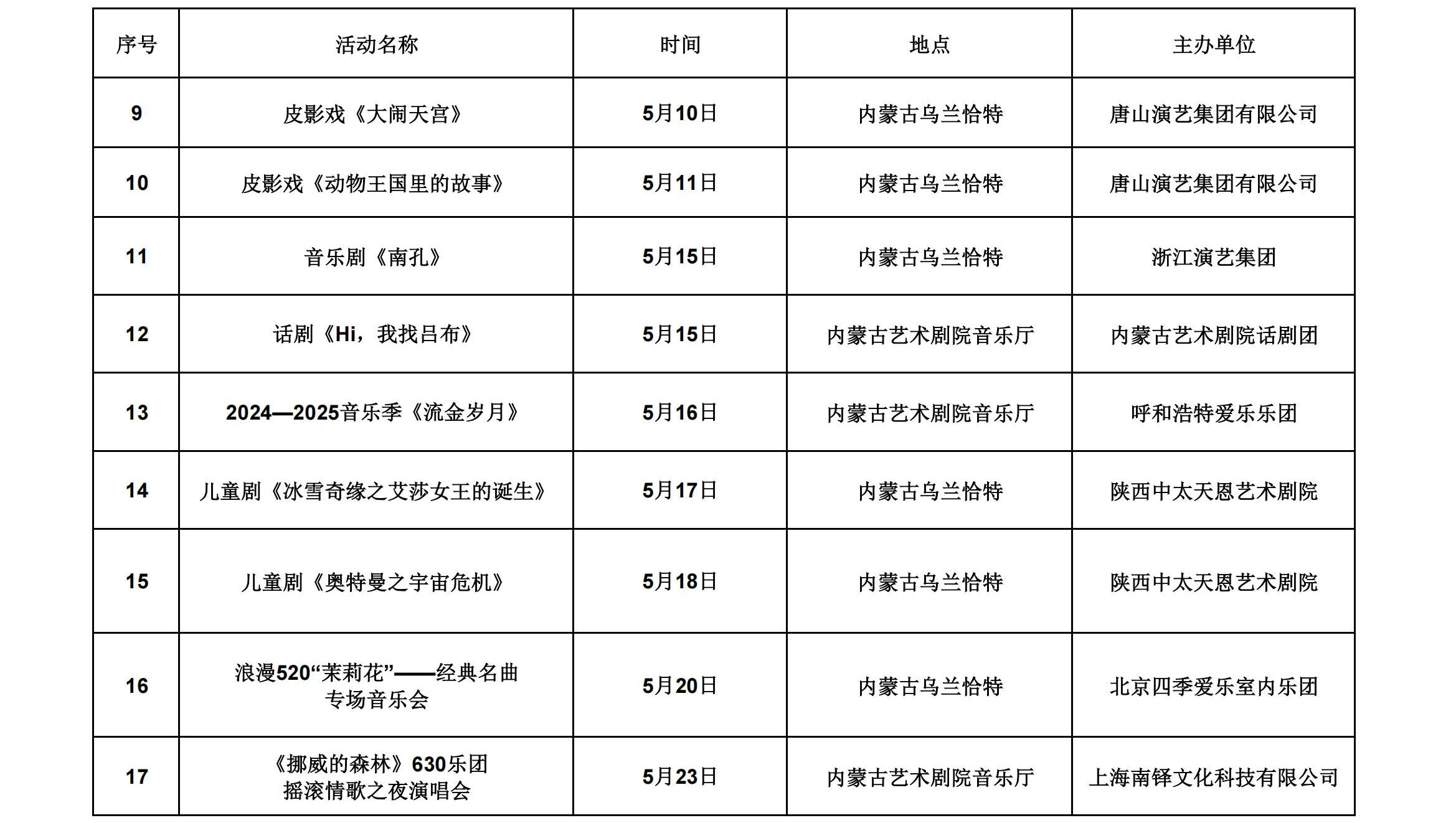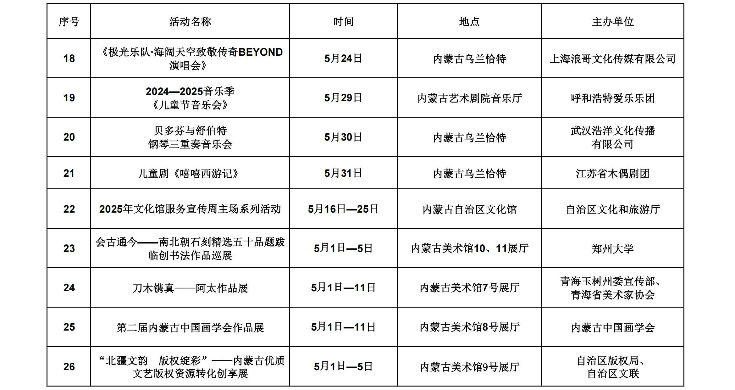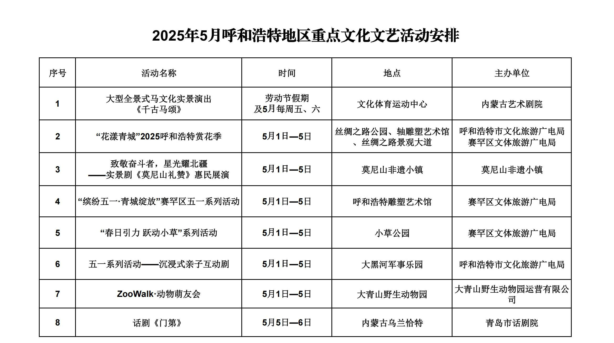 2025年5月呼和浩特地區(qū)重點(diǎn)文化文藝活動(dòng)安排