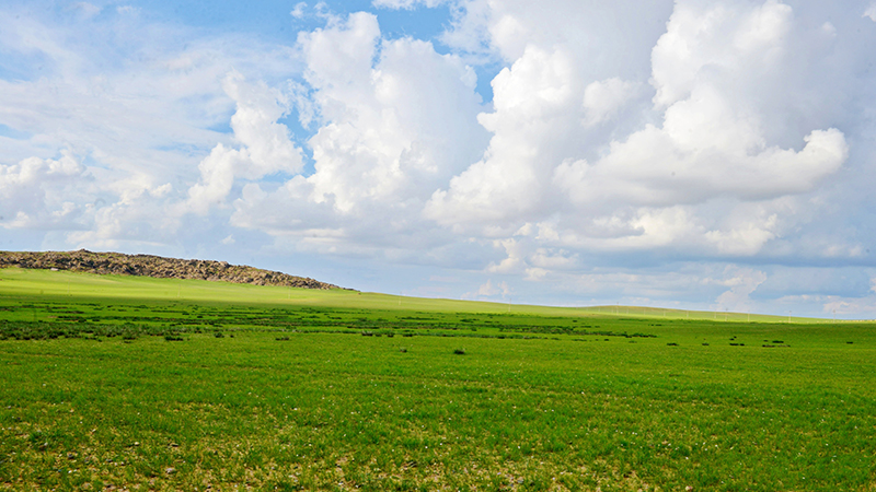 春夏之交,幾場大雨過后,達茂草原被洗刷得纖塵不染,一片青綠。
