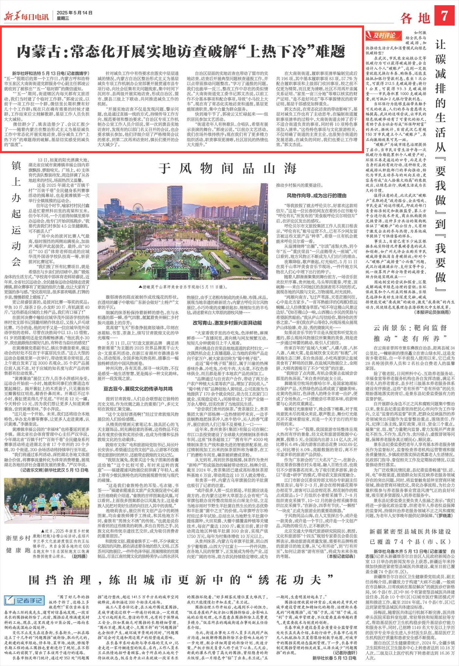 2025年5月14日《新華每日電訊》第7版刊發(fā)了《內(nèi)蒙古:常態(tài)化開展實(shí)地訪查破解“上熱下冷”難題》的文章,報(bào)道了內(nèi)蒙古自治區(qū)整治形式主義為基層減負(fù)專項(xiàng)工作機(jī)制辦公室部署開展貫通市縣專項(xiàng)行動(dòng),向社會(huì)征集有關(guān)問題線索,集中時(shí)間下沉到市、縣兩級(jí)開展實(shí)地訪查,形成自治區(qū)、盟市、旗縣三級(jí)上下聯(lián)動(dòng)、共同推進(jìn)減負(fù)工作的機(jī)制。
