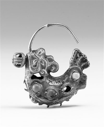 遼代嵌綠松石摩羯魚(yú)金耳墜。 來(lái)源:上海博物館網(wǎng)站