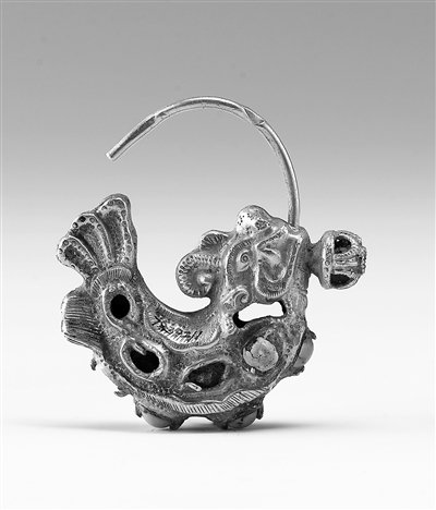 在遼代的文物遺存中,摩羯圖像廣泛見(jiàn)諸于各類器物上,從隨身佩戴的飾件到案頭陳設(shè)的器皿,從服飾上的精美紋樣到與宗教相關(guān)的器物,有摩羯形金耳墜、摩羯紋銀盤、摩羯紋銅鏡、摩羯紋鎏金繁花銀盞托、摩羯形白瓷燈、摩羯形注壺、摩羯紋緙絲草帽等。這些遍布于遼代各類器物上的摩羯形象,并非本土原生的文化符號(hào),其背后承載著跨越地域的各民族交往交流交融和文化融通互鑒的歷程。