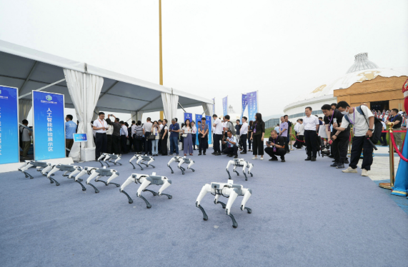 7月12日,2025綠色算力大會(huì)在呼和浩特開(kāi)幕,圖為工作人員通過(guò)鍵盤操控機(jī)器狗進(jìn)行表演。