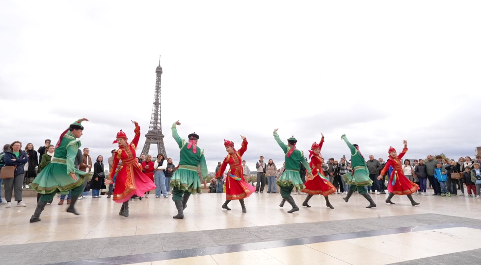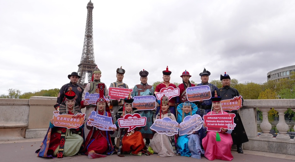 在法國巴黎市的夏約宮廣場、埃菲爾鐵塔、香榭麗舍大街、巴黎圣母院、凱旋門、國際大學城,比利時布魯塞爾市大廣場、藝術(shù)山等地,阿拉善的烏蘭牧騎演員開啟了一場場融合蒙古族華服走秀與快閃歌舞表演,“阿拉善在哪里?”“這服裝太酷了!”“怎么有萬馬奔騰的感覺!”“想去看一看!”“這沙漠也太壯觀了!”快閃路演吸引了法國、比利時以及來自世界各地的游客駐足觀看,喝彩不斷,沉醉其中。