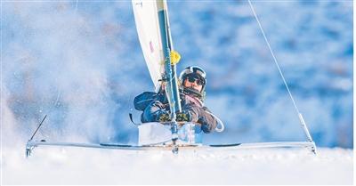 冰帆又稱“冰上快艇”,是近幾年興起的戶外運動項目。與尋常帆船比賽不同,冰帆賽的場地并非海面,而是一片光滑如鏡的冰面。冰帆的獨特之處在于船體下方配置了冰刀,選手們操縱帆具,僅憑自然風力,就能在冰面上揚帆。相較普通帆船,冰帆的操作更為簡易,冰刀相當于輪子,風帆相當于發(fā)動機。比賽場地寬200米以上、長700米以上,風力平穩(wěn)保持在2級以上,賽時選手躺在帆船中以減少風阻。