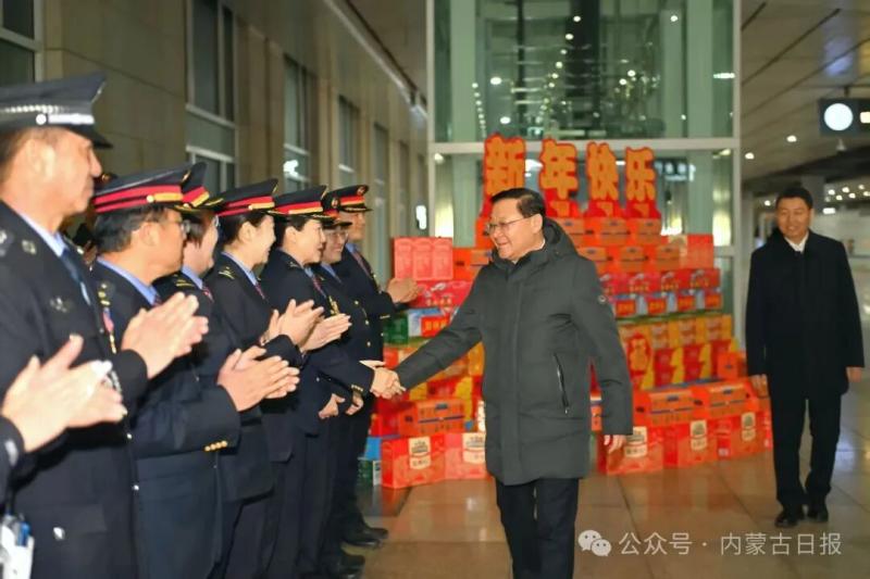 春節(jié)將至,首府的街頭張燈結(jié)彩,處處洋溢著喜慶祥和的節(jié)日氛圍。王偉中一行首先來(lái)到賽罕區(qū)一中隊(duì)交警執(zhí)勤崗點(diǎn),親切慰問(wèn)正在執(zhí)勤的民警,送上新春美好祝福,感謝大家的默默堅(jiān)守和無(wú)私付出。王偉中叮囑大家注意防寒保暖,以良好狀態(tài)守護(hù)城市平安暢通。在萬(wàn)正廣場(chǎng)環(huán)衛(wèi)站,王偉中一行看望慰問(wèn)辛勤工作的環(huán)衛(wèi)工人。王偉中說(shuō),你們是城市的“美容師”,每天起早貪黑、風(fēng)雨無(wú)阻,用辛勤勞動(dòng)換來(lái)了城市的清潔美麗,大家辛苦了。有關(guān)部門(mén)要多關(guān)心他們的工作和生活,細(xì)化關(guān)愛(ài)舉措,健全保障機(jī)制,在全社會(huì)營(yíng)造尊重環(huán)衛(wèi)工人、珍愛(ài)生活環(huán)境的良好氛圍。隨后,王偉中一行來(lái)到呼和浩特火車(chē)東站,仔細(xì)詢問(wèn)春運(yùn)期間人流車(chē)流、安全保障等情況。王偉中強(qiáng)調(diào)要精準(zhǔn)把握春節(jié)群眾出行規(guī)律,加強(qiáng)運(yùn)力調(diào)配、客流疏導(dǎo)和秩序維護(hù),深入排查整治安全隱患,切實(shí)提升服務(wù)質(zhì)量,讓群眾出行更安全、更舒心。