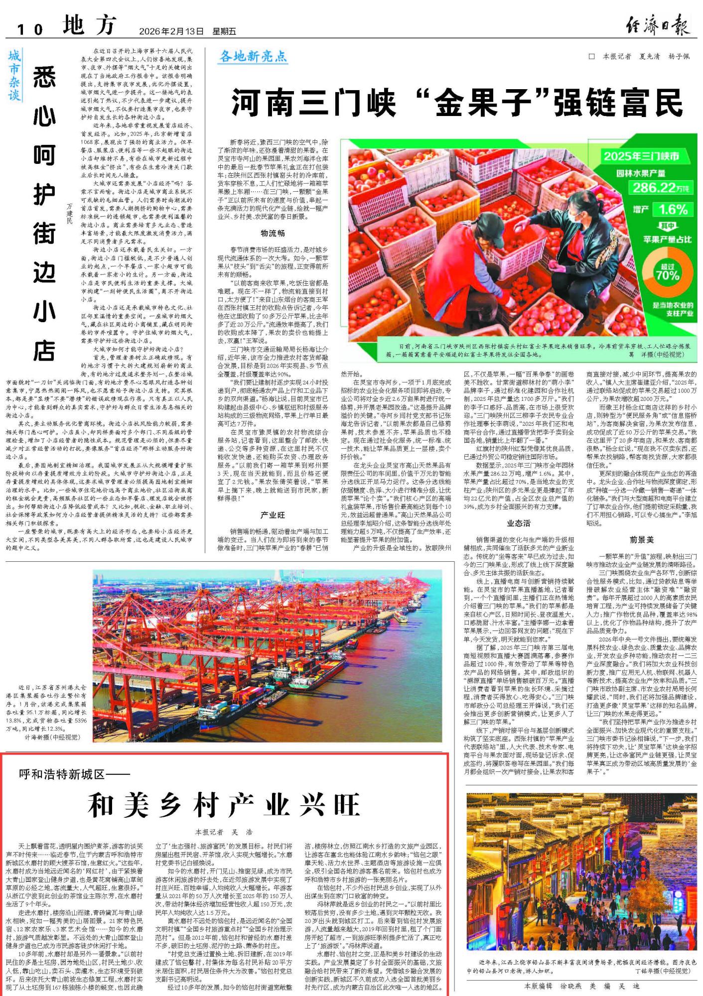 2026年2月13日《經(jīng)濟日報》第10版刊發(fā)了《呼和浩特新城區(qū)——和美鄉(xiāng)村產(chǎn)業(yè)興旺》的文章,報道了內(nèi)蒙古呼和浩特市新城區(qū)水磨村、惱包村之變,是和美鄉(xiāng)村建設(shè)的生動實踐。新城區(qū)成功入選全國首批美麗鄉(xiāng)村先行區(qū),成為內(nèi)蒙古自治區(qū)此次唯一入選的地區(qū)。產(chǎn)業(yè)發(fā)展奠定了鄉(xiāng)村全面振興的基礎(chǔ),文旅融合給村民帶來了新的希望。