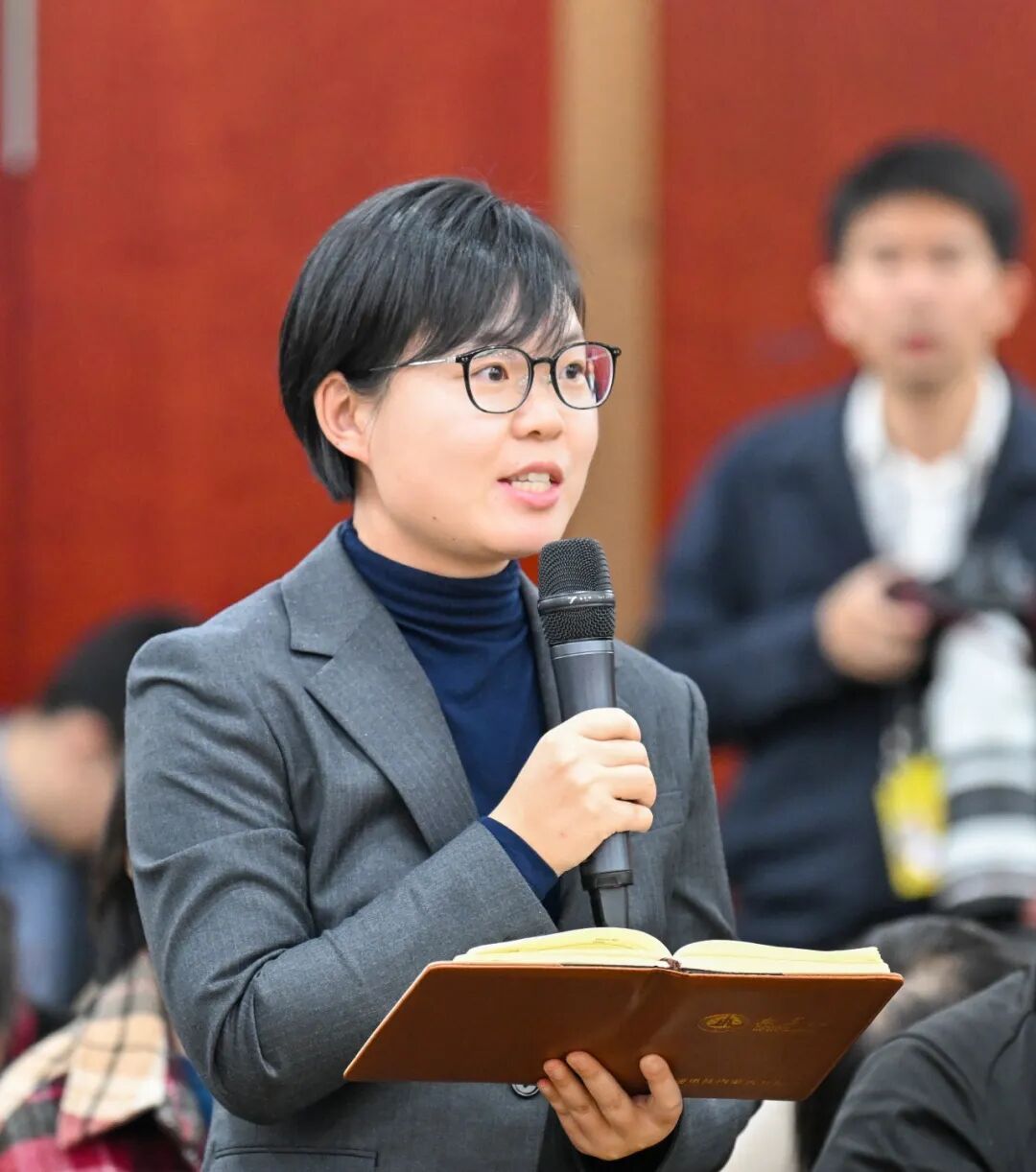龔明珠代表回答經(jīng)濟日報記者提問。