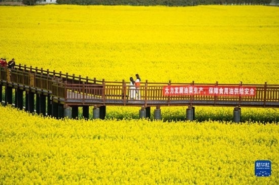 近日,湖南省常德市鼎城區(qū)十美堂鎮(zhèn)種植的數(shù)萬畝油菜花競相綻放,金燦燦的油菜花海吸引游客前來賞花游玩。近年來,十美堂鎮(zhèn)將油菜產(chǎn)業(yè)與文旅產(chǎn)業(yè)深度融合,帶動鄉(xiāng)村餐飲、民宿等產(chǎn)業(yè)發(fā)展,助力鄉(xiāng)村振興。
