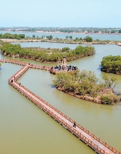 在山東黃河三角洲國(guó)家級(jí)自然保護(hù)區(qū)里,游客正在參觀。本報(bào)記者 劉發(fā)為攝