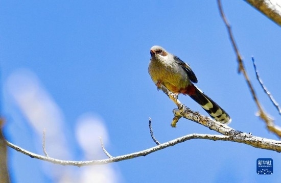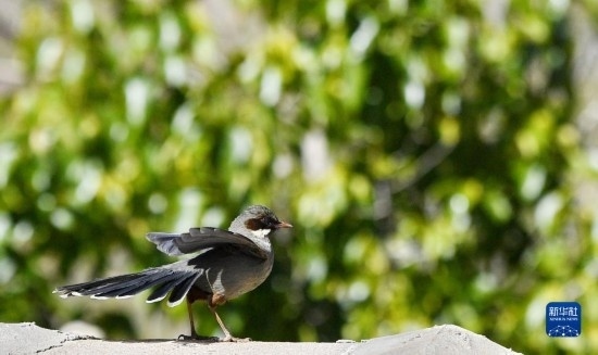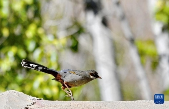 這是在拉薩市城關(guān)區(qū)蔡公堂街道次角林村拍攝的灰腹噪鹛(5月14日攝)。