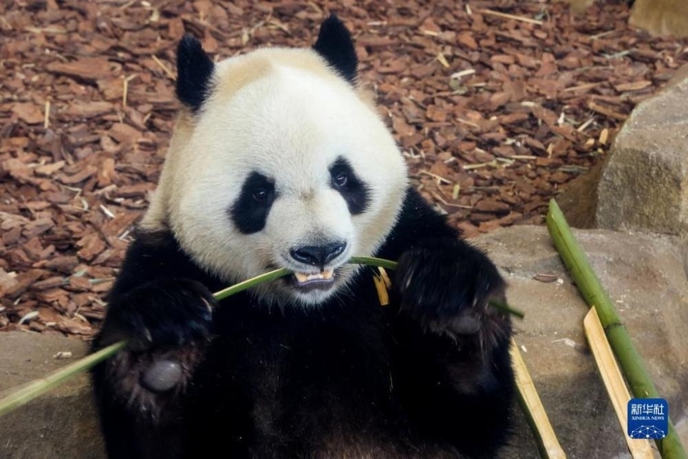 2023年4月24日,在成都大熊貓繁育研究基地,成都大運會吉祥物“蓉寶”原型大熊貓“芝麻”迎來了六周歲生日。新華社發(fā)(陳居偉攝)