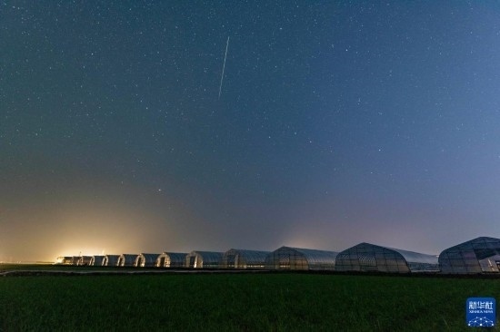這是6月25日夜晚在黑龍江省富錦市萬畝水稻公園內(nèi)拍攝的稻田和星空(長時間曝光)。