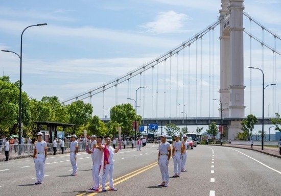 杭州第19屆亞運(yùn)會(huì)舟山站火炬?zhèn)鬟f專(zhuān)項(xiàng)組常務(wù)副組長(zhǎng)李進(jìn)城介紹,整個(gè)線(xiàn)路全程融入了海、港、船、橋等多種海洋元素,通過(guò)現(xiàn)代與歷史的交錯(cuò)融合、文旅味與山海味的交相輝映,全方位展現(xiàn)了“海上花園城 自由貿(mào)易港”的大美場(chǎng)景。