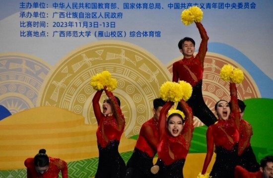 學(xué)青會(huì)校園組啦啦操比賽場(chǎng)景。新華社記者 鄭昕 攝